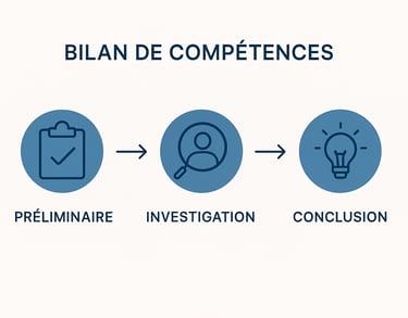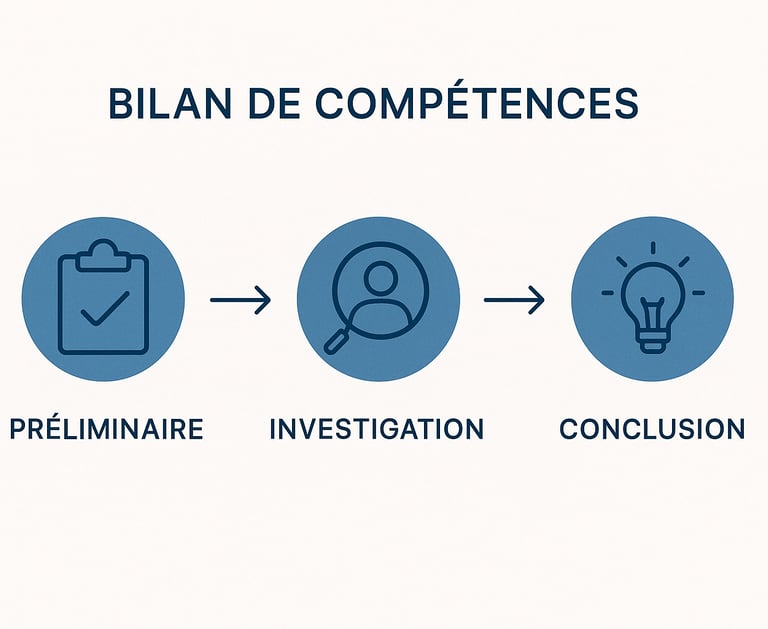 Ma méthodologie s'articule autour de trois phases essentielles. La phase préliminaire permet de définir vos besoins et attentes lors d'un premier entretien gratuit et sans engagement. C'est le moment de vérifier que le bilan de compétences correspond réellement à votre besoin.